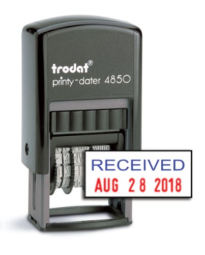 -. Binding : Office Product -. Brand : Rubber Stamp Creation -. Feature : Date Size: 5/32" (a bit more than 1/8") / Date Range: Good through 2024 (12 years) / Good for a few thousand impressions before need to re-ink / Ink Color: Blue/Red / Ships same day or next business day from order -. Label : Trodat -. Manufacturer : Trodat -. MPN : 4850receivedbr -. PackageQuantity : 1 -. PartNumber : 4850receivedbr -. ProductGroup : Office Product -. ProductTypeName : OFFICE_PRODUCTS -. Publisher : Trodat -. Studio : Trodat -. Title : Trodat 4850 Date Stamp with "RECEIVED", 2-Color Self Inking Stamp - Blue/Red Ink