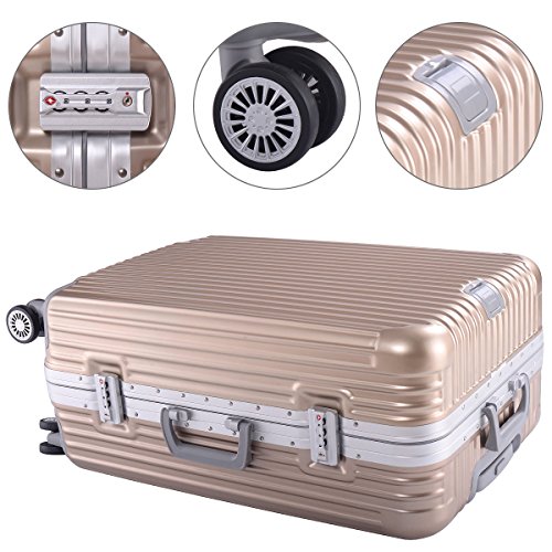 Product Description ???????UNIQUE DESIGN!The Firm Coded Lock Guarantees The Security Of Your Luggage.Take The Luggage Set,Take Your Pleasure Along The Trip★ ??EXCELLENT QUALITY!This Awesome, Hardsided Luggage Is Perfect For Traveling. No Matter The Multi-Directional Wheels, Or The Ergonomically Designed Telescoping Handles Will Add Much Convenience To Your Trip. The Spacious Main Compartment And Zippered Pockets Keep Your Travel Essentials, Your Small Valuables Well Organized. ★ ??COMFORTABLE USE!Brand New And High Quality Simple, Fashion Stylish Designed Lightweight But Durable ABS PC And Aluminum frame★ ??FAST SHIPPING!Color: Gold Demenision: 19"(L) × 10"(W) × 26"(H) Material: ABS PC Aluminum frame Double TSA Lock Card Lock★ ?????GUARANTEE!You and all our clients have a 100% money back guarantee if any problems with the product occur.We'll Provide A 5 Star Experience, our world class customer service that's ready and available to address your concerns★ 0