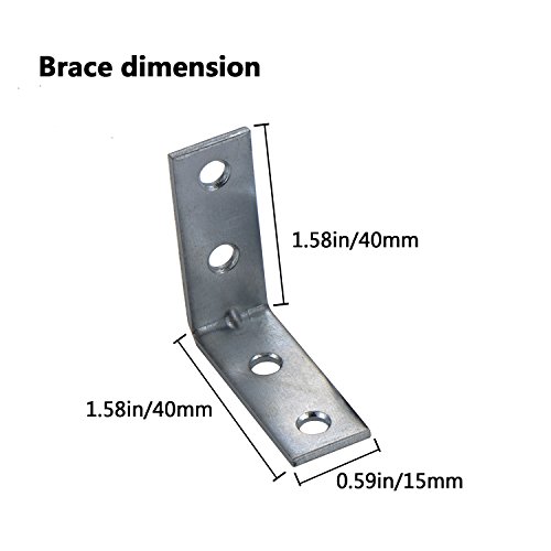 CORNER BRACKET MEASUREMENT: this set of corner brackets size is 40 mm x 40 mm/ 1.58 inches x 1.58 inches, 15 mm/ 0.59 inch in width and 2 mm/ 0.08 inch in thickness