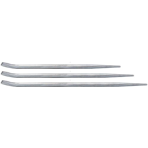 The Mayhew 69151-TR 3 piece plated jimmy bar set has a long tapered end for aligning and adjusting metal or wood. The angled chisel end is for extra leverage when prying.