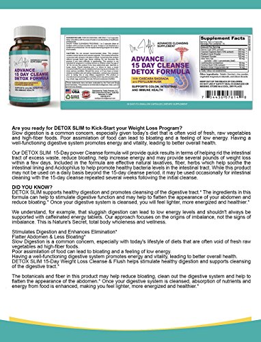 Are you ready for a Detox Slim to Kick-Start your Weight Loss Program? Dr. Jeff's Detox Slim 15-Day power cleanse formula will provide quick results in terms of helping rid the intestinal tract of excess waste, reduce, bloating, help increase energy and may provide several pounds of weight loss within just a few days. Included in the formula are effective natural laxatives, fiber, and herbs which help soothe the intestinal lining and Acidophilus to help promote healthy bacteria levels in the intestinal tract. While this product may not be used on a daily basis beyond the 15-day cleanse period, it may be used occasionally for intestinal cleaning with the 15-day cleanse repeated several weeks following the initial cleanse. Add Dr. Jeff's Cleanse to your weight loss program today and let's start leading to a healthier colon today!Feature