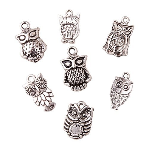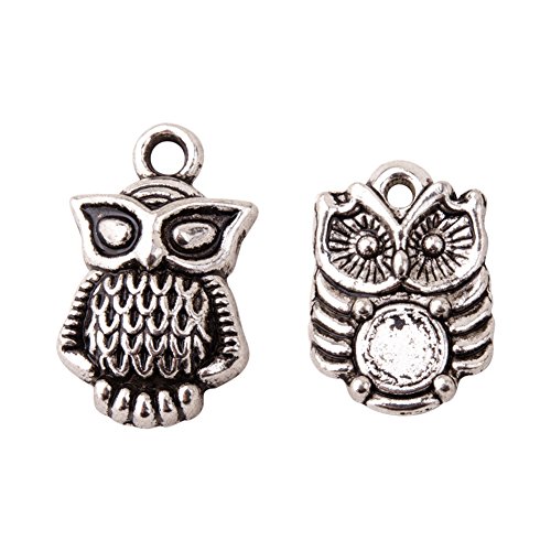 Pandahall 50pcs Antique Silver Tibetan Style Alloy Owl Pendants for Jewelry Making