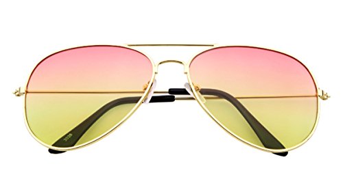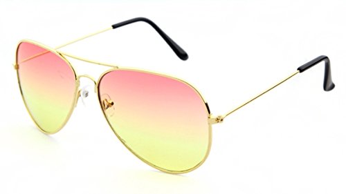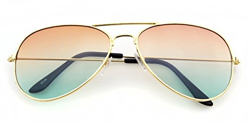 Product Description Super cute tinted lens aviator sunglasses that feature a gold wire frame. Variety of bright and vibrant color lenses would boast your confidence and suit your personality. Stay fun and flirty all season in these adorable sunnies. Classic wire aviator frames become more fashionable with cute color lenses. Lenses are impact-resistant that blocks out 100% of the harmful UV light and eliminates glare for sharp, clear vision. It also increases contrast and depth perception for an outstanding view. Adjustable clear nose pads Plastic temple tips 100% Brand new and high quality. 0