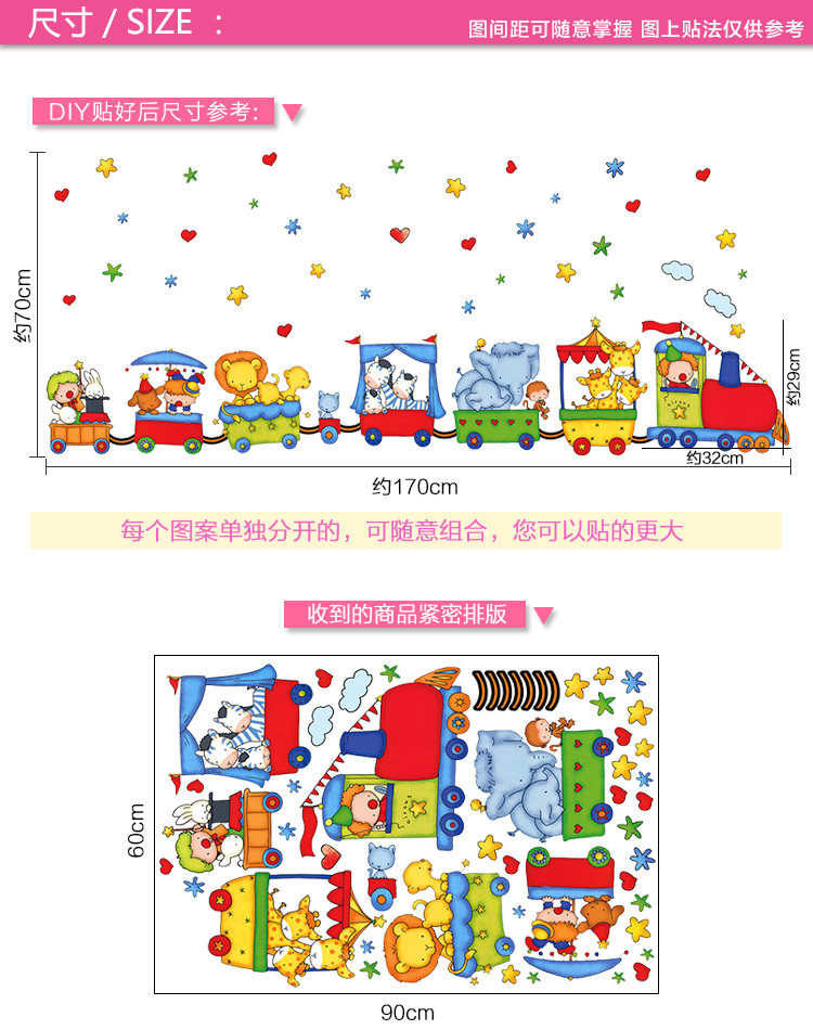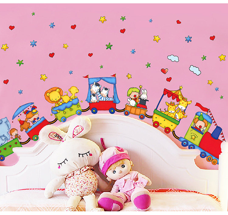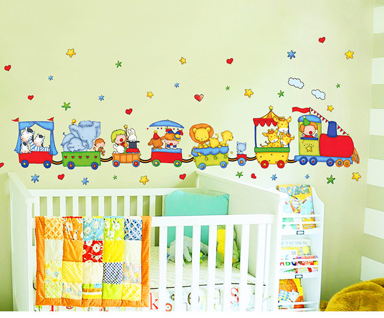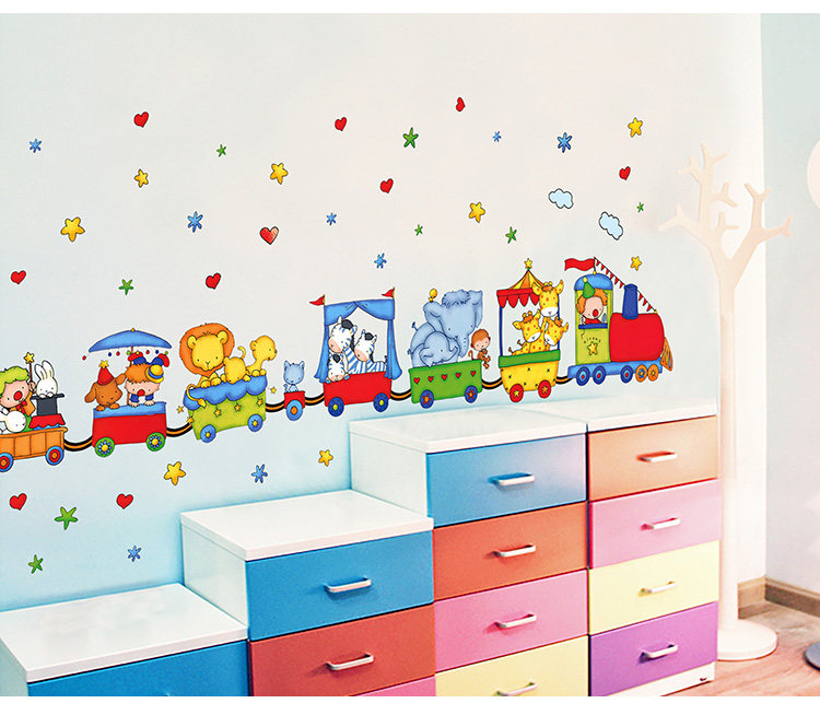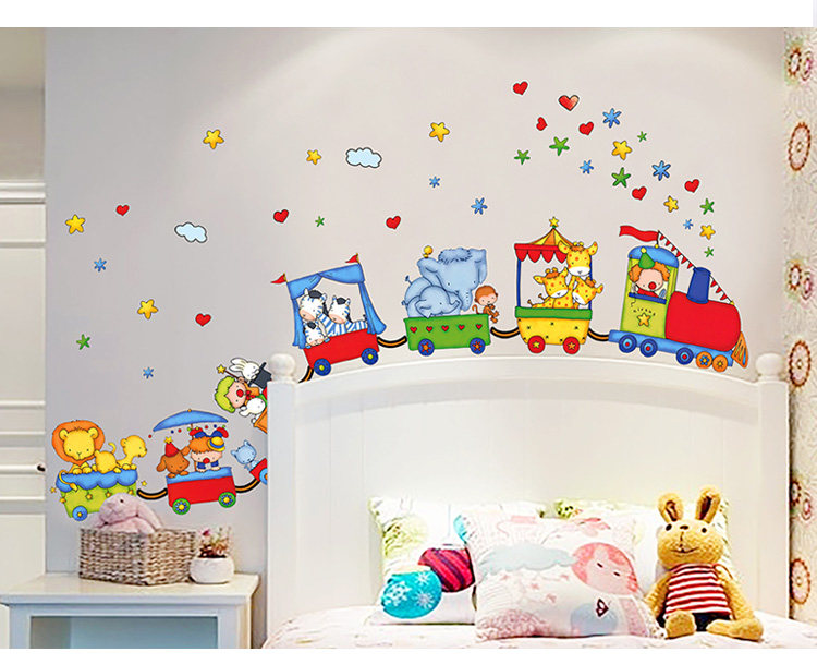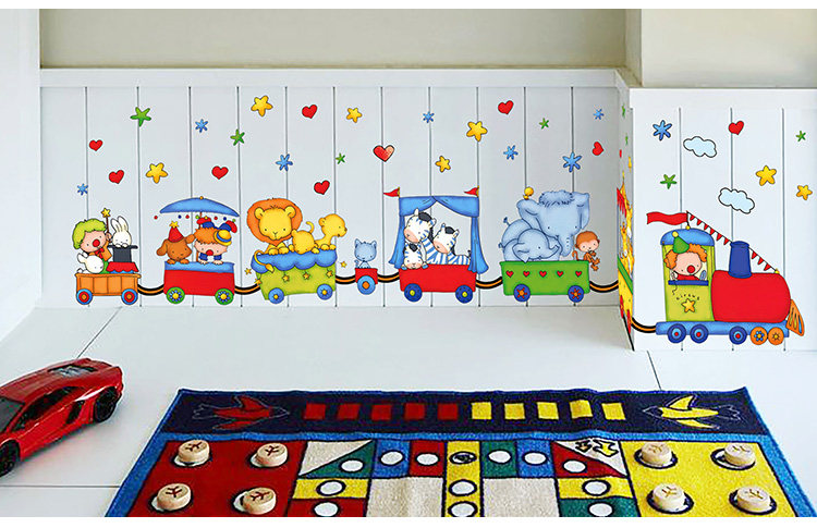 儿童房间墙壁贴纸卧室可移除墙纸贴画幼儿园装饰卡通动物火车墙贴