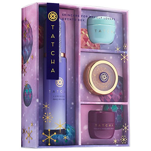 TATCHA Skincare for Makeup Lovers Obento Set Box (4 Pieces Kit) A four-piece setenriched with pure Japanese ingredientsto give skin and lips a healthy-looking glow. Solutions for: - Dullness and uneven texture - Pores - Dryness A fine spray of this silky Luminous Dewy Skin Mist is packed with 20 percent botanical oils and humectants to give skin a boost of hydration and an instant dewy glow. This anti-aging Water Cream moisturizer transforms to release a burst of skin-improving nutrients and refreshing hydration for clear, poreless-looking skin. Reveal an instant and lasting glow with this creamy anti-aging Violet-C Radiance, packed with brightening Japanese beautyberry, two types of vitamin C, and smoothing AHAs from seven fruits. This nourishing Gold Spun Camellia Lip Balm hydrates and helps protect lips with antioxidants and essential fatty acids, while 23-karat gold imparts a subtle touch of golden shimmer. Ideal for gifting, it comes packaged in an obento-style box that can be reused to store jewelry or organize makeup. These pure formulas are non-irritating, non-sensitizing, dermatologist tested, cruelty-free, and formulated without mineral oil, synthetic fragrances, sulfate detergents, urea, DEA, or TEA.