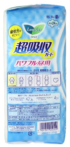 -. Binding : Health and Beauty -. Brand : Laurier -. EAN : 0784190520899 -. Feature : Designed to fit the body and for powerful absorbency on regular days. / Long lasting protection from leaks, so you can wear with confidence even when you don't have time to replace. / Slim design around the raised absorbent center for extra comfort. -. IsAdultProduct : 0 -. Label : Simple Deluxe - Beauty -. Manufacturer : Simple Deluxe - Beauty -. MPN : 4901301254559 -. NumberOfItems : 1 -. PackageQuantity : 1 -. PartNumber : 4901301254559 -. ProductGroup : Beauty -. ProductTypeName : BEAUTY -. PublicationDate : 2015-10-23 -. Publisher : Simple Deluxe - Beauty -. ReleaseDate : 2015-01-01 -. Studio : Simple Deluxe - Beauty -. Title : LAURIER Kao Speed Plus Powerful Guard Sanitary Napkin with Wings, 22 Count -. UPC : 803350042924