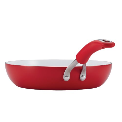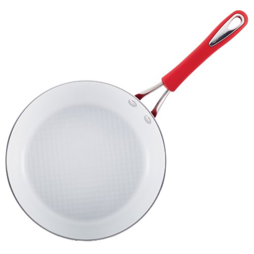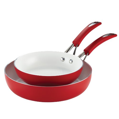 • The ceramic nonstick skillets' double-riveted contoured handles match the colorful exteriors and are rubberized for solid, comfortable grasp