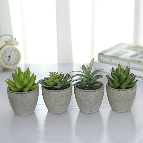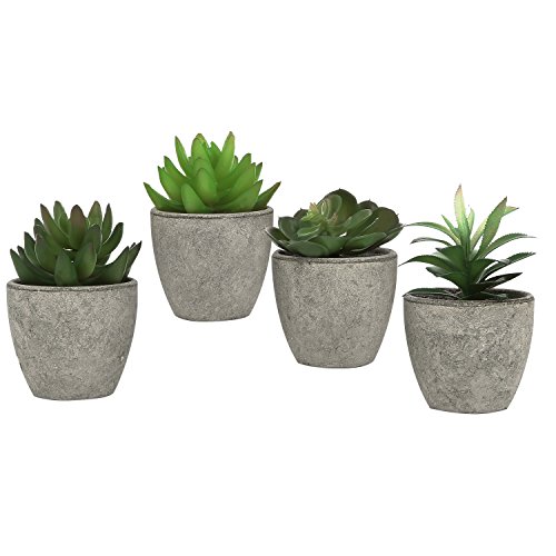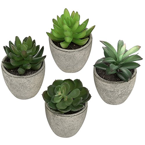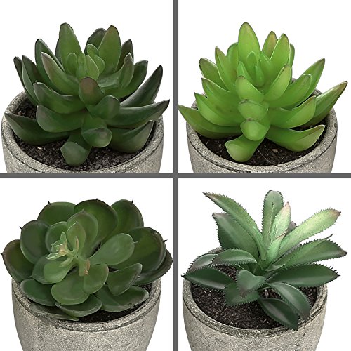 Set of 4 Faux Assorted Succulent Plants in Recycled Pulp Molded Cylindrical Planter Pots