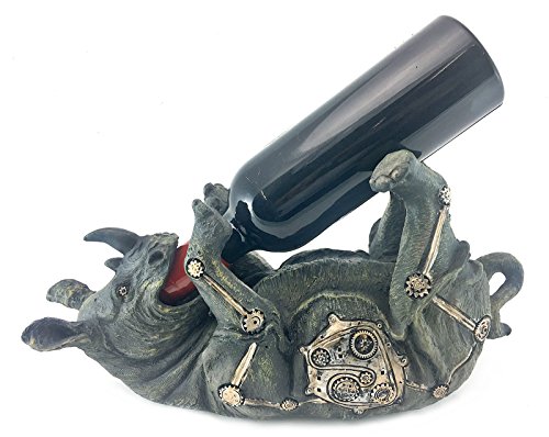 New Steampunk WINO RHINO Rhinoceros Animal Wine Holder Sculpture for Unique Tabletop Wine Racks & Stands or Decorative Statues and Animal Figurines As Holiday Gifts for Pet Owners