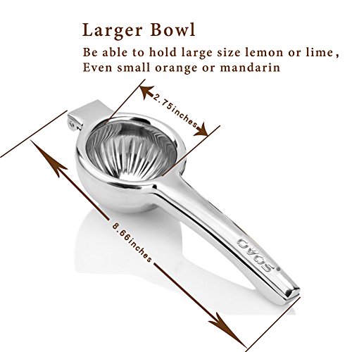 - ERGONOMIC DESIGN - The long handles of the OVOS Lemon Juicer with its rounded edges makes it very comfortable to use. The longer length of the handle allows you to take its leverage and makes squeezing really easy. You can also comfortably put pressure on the handle without the edges of the handle cutting into your hands. Moreover, the holes are thoughtfully sized to allow for easy juice flow without splatter