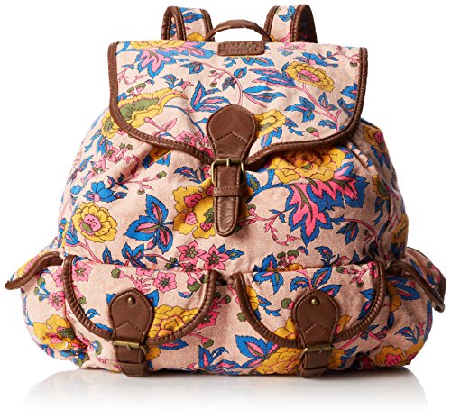 Add some beauty to the scenery with the chic look of our travlin amigas canvas backpack. Design in three exotic prints, its non-structured silhouette includes a deep main compartment and two pockets at front with buckle closures. A flap pocket appears at each side