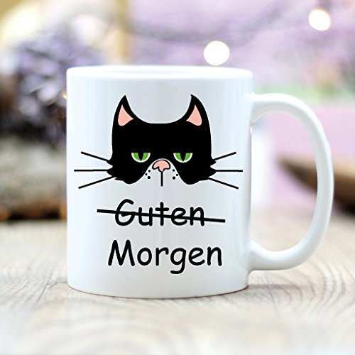 -. Title : Wandtattoo Loft® Bedruckte Keramiktasse Spruch "Guten Morgen" mit einer Katze grimmig /Cat /beidseitig / Tasse / Becher / Spülmaschinenfest / Kaffeetasse mit Motiv und Spruch