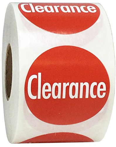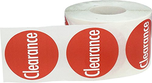 InStockLabels Clearance Labels 1 1/2 Inch 500 Adhesive Stickers, Red With White Lettering