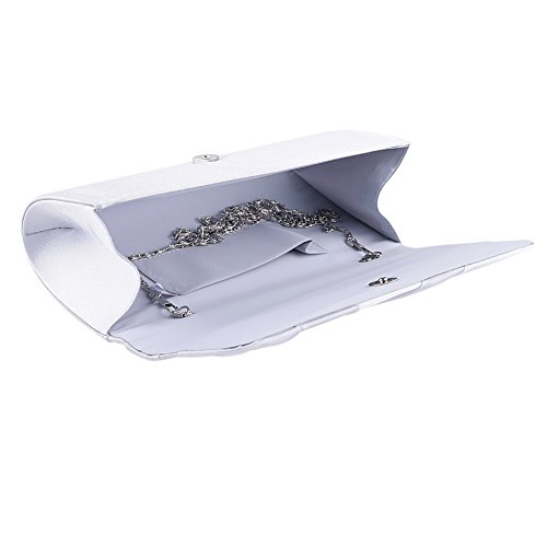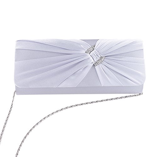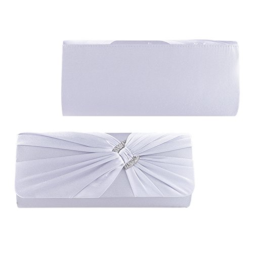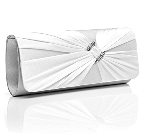 Jubileens Satin Diamante Pleated Evening Clutch Bag Bridal Handbag Prom Purse (Silver)