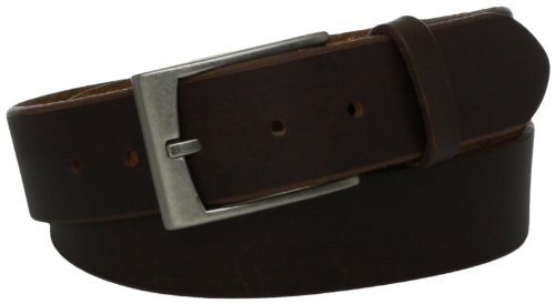 Get a rugged look with this brown leather belt. Featuring a vintage-inspired buckle and unfinished edges.