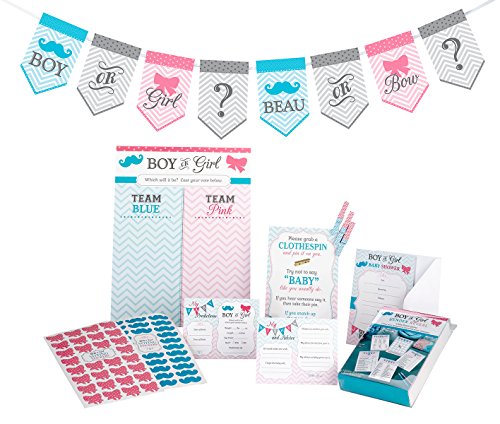 ReleaseDate : 2017-06-08 Studio : Lillian Rose Publisher : Lillian Rose Binding : Baby Product Product Description Lillian Rose Gender Reveal Baby Shower Prepack. Complete a gender reveal party with all of the perfect finishing touches. Included in this gender reveal set is a Boy or Girl/Beau or Bow Bunting (24BS250 BU), Clothespin Game (24BS250 CG), Game Cards (24BS250 SG), Voting Board (24BS250 VB), Prediction Cards (24BS250 PC), Wishes Cards (24BS250 WC) and 3 sets of Invitations (24BS250 IN). 0