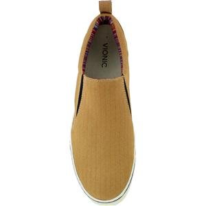 -. Feature : Vionic footwear may improve alignment and offer natural relief for foot pain, heel pain, knee pain, / Striped fabric lining / Rubber sole with basketweave tread design / Herringbone fabric upper / Rubber sidewall