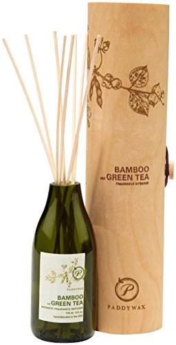 Paddywax eco green diffuser features an earth-freindly recylced glass vessel packaged in a smartly designed wood veneer tube