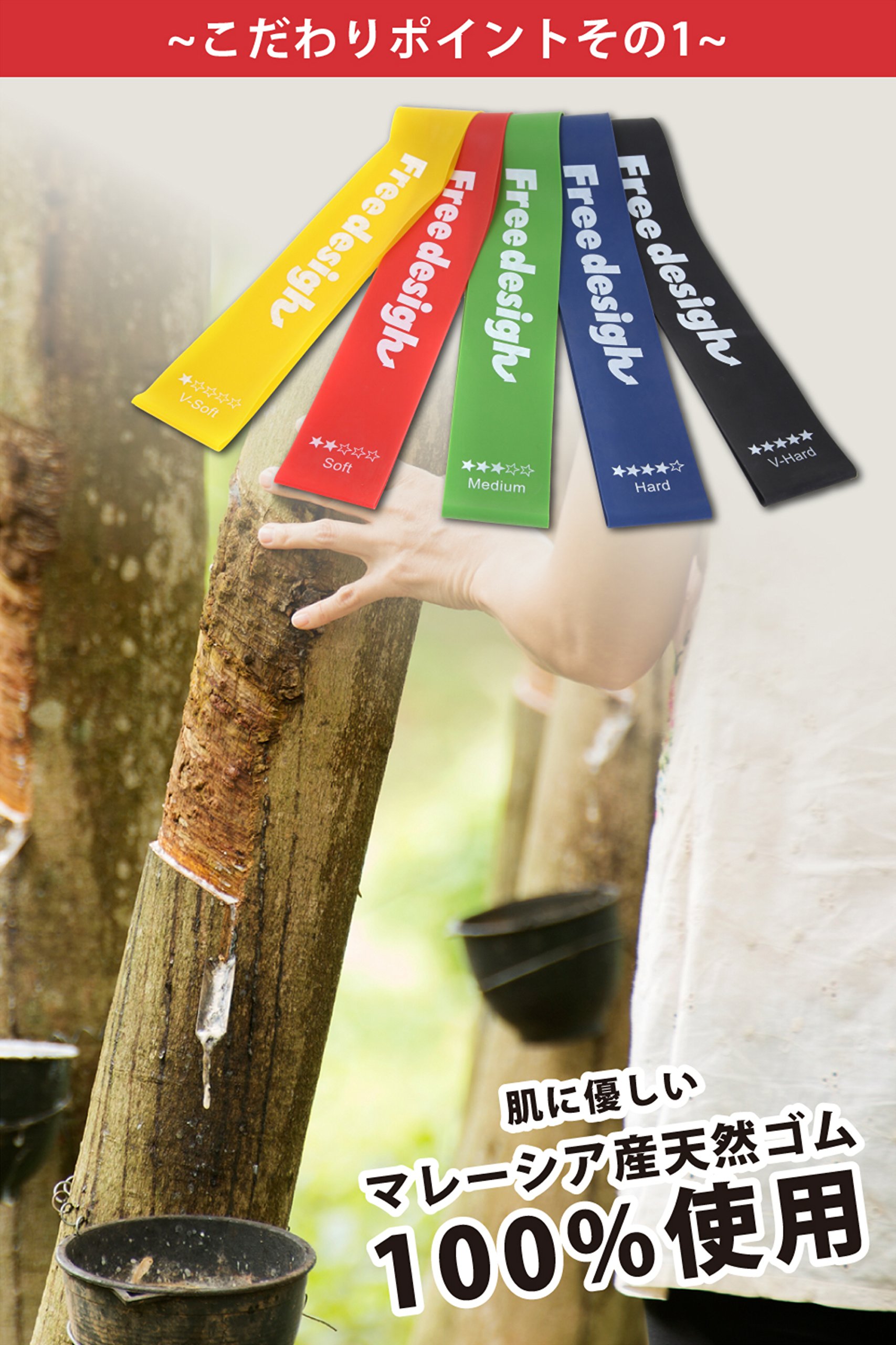 In order to solve such anxiety, FreeDesign's products stuck to the materials and used Malaysian natural rubber excellent in stretchability and strength.