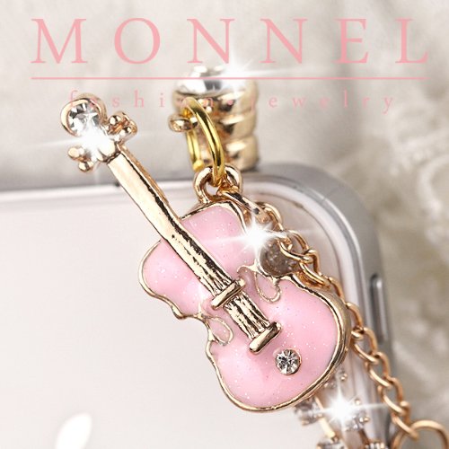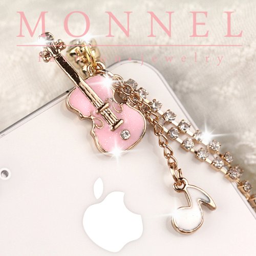 Ip488 Pink Violin Music Note 3.5mm Ear Cap Anti Phone Dust Plug Phone Charm