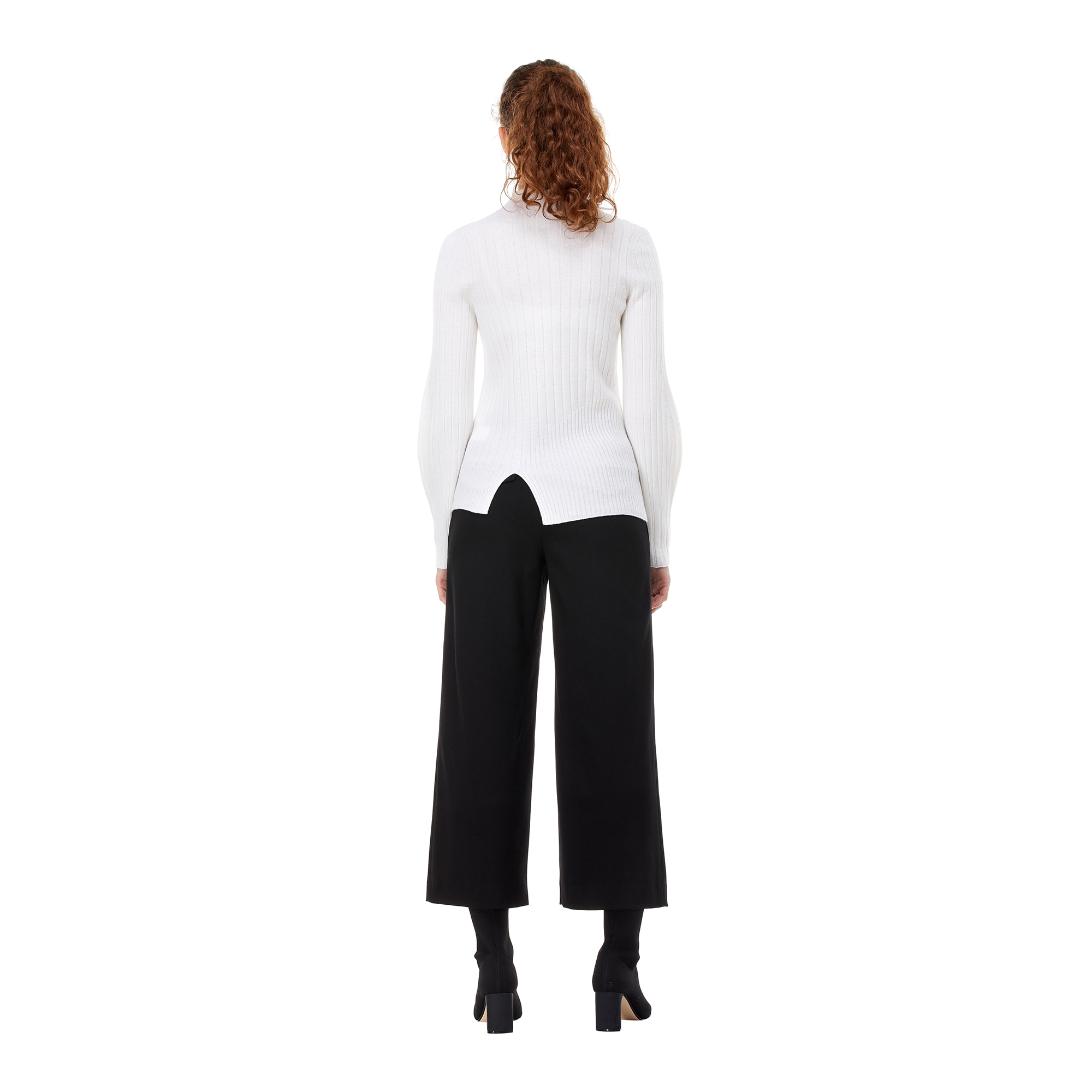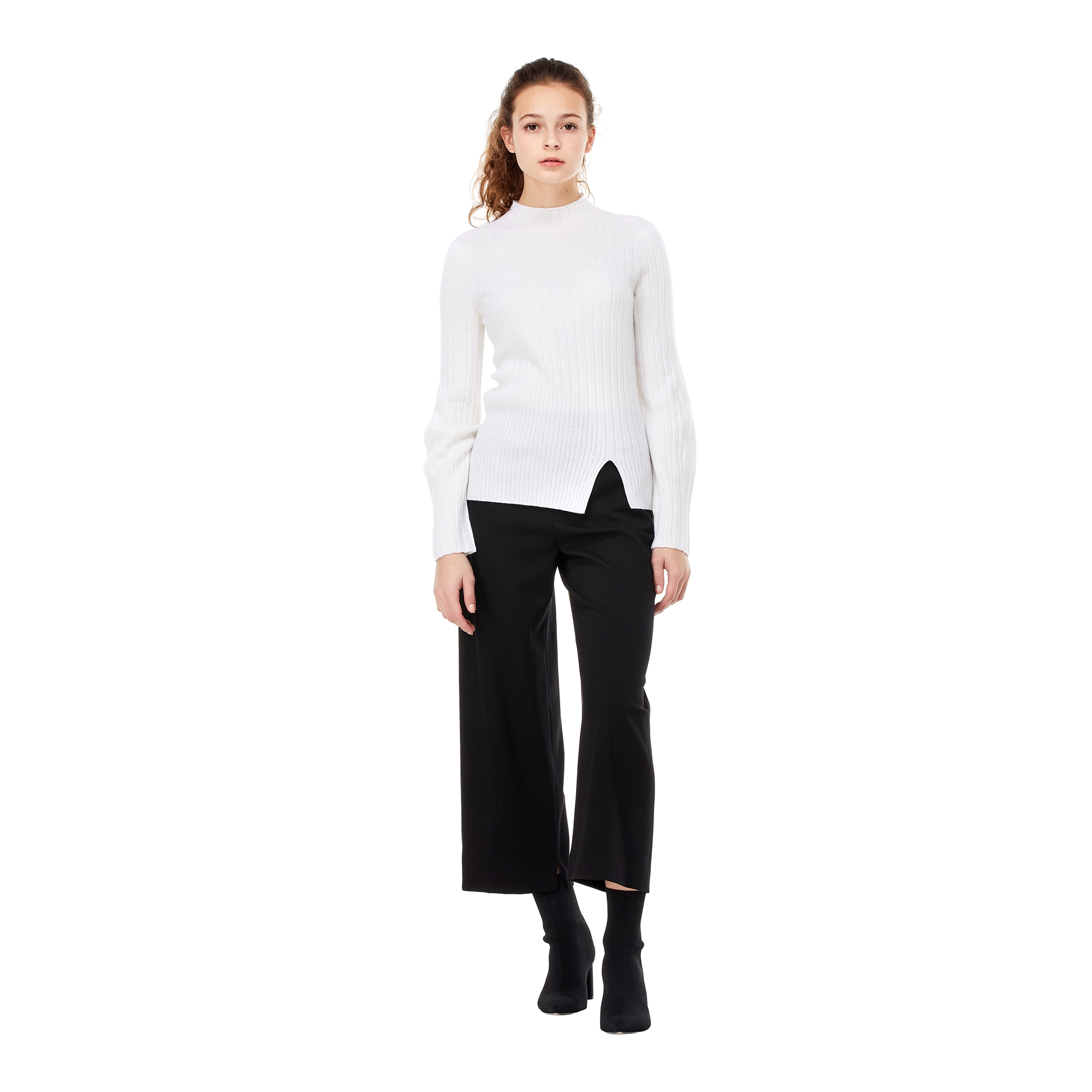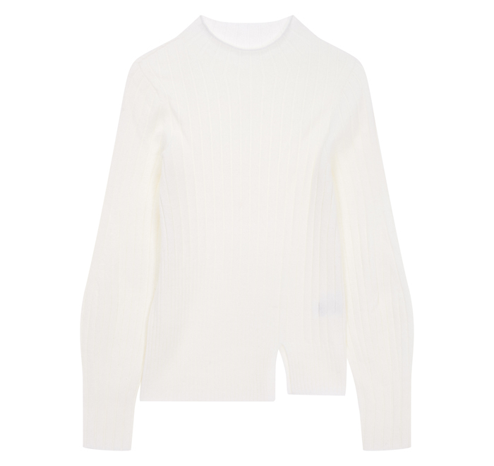 디자인 포인트:- 슬리브에 볼륨감이 돋보이는 캐주얼한 골지 조직 니트- 라운드넥과 베이직한 핏을 가진 디자인- 신축성있는 울