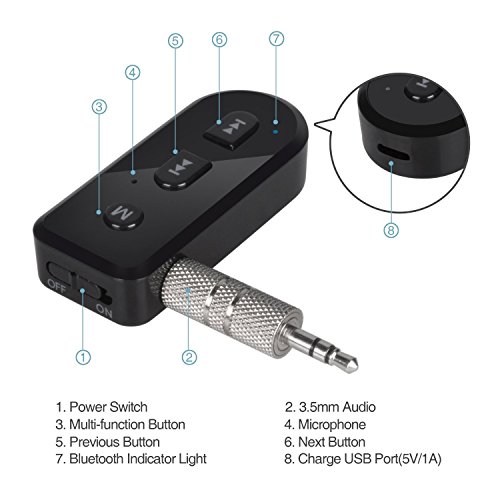 - Package includes: Bluetooth 4.1 Receiver / Micro USB Charging Cable / 3.5mm to 3.5mm Plug/3.5mm audio cable /User's Manual; If you have any questions or suggestions, please contact us; We will solve your problem promptly, until you are satisfied!