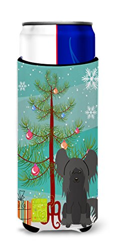 Caroline's Treasures BB4237MUK Merry Christmas Tree Chinese Crested Black Michelob Ultra Hugger for Slim Cans, Multicolor