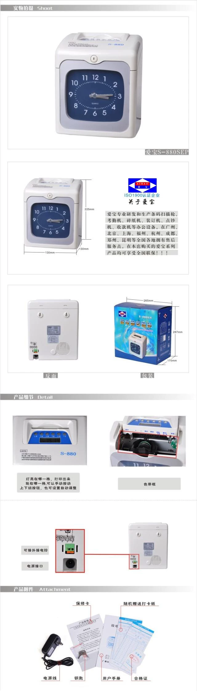 Aibo S-880SEP punch card attendance identify positive and negative, color and attendance, power can play