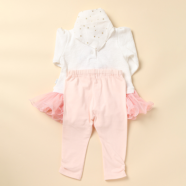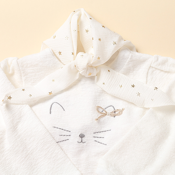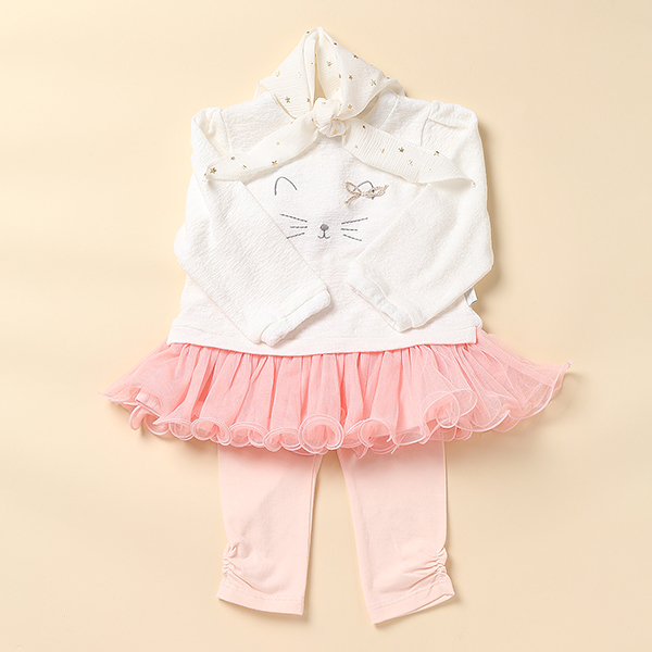 가슴에 고양이 캐릭터가 포인트인 여아 상하복입니다