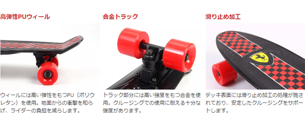●Ferrariからミニクルーザータイプのスケートボードが登場。色鮮やかなFerrariイメージカラーの4色からお選びいただけます。