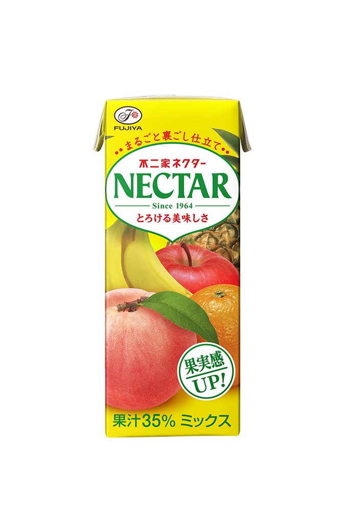 <原材料:果実(もも、りんご、バナナ、パインアップル、オレンジ、ぶどう)、糖類(果糖ぶどう糖液糖、砂糖)、香料(乳由来)、酸味料、ビタミンC 内容量:200ml×24本 カロリー:1本当たり、109kcal 商品サイズ(高さx奥行x幅):12.5cm×15.3cm×33.0cm