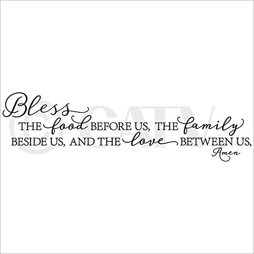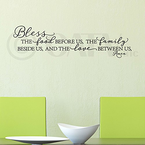 Bless the Food Before Us, the Family Beside Us, and the Love Between Us, Amen Vinyl Lettering Wall Decal (Style B 10"H x 37"L, Black)