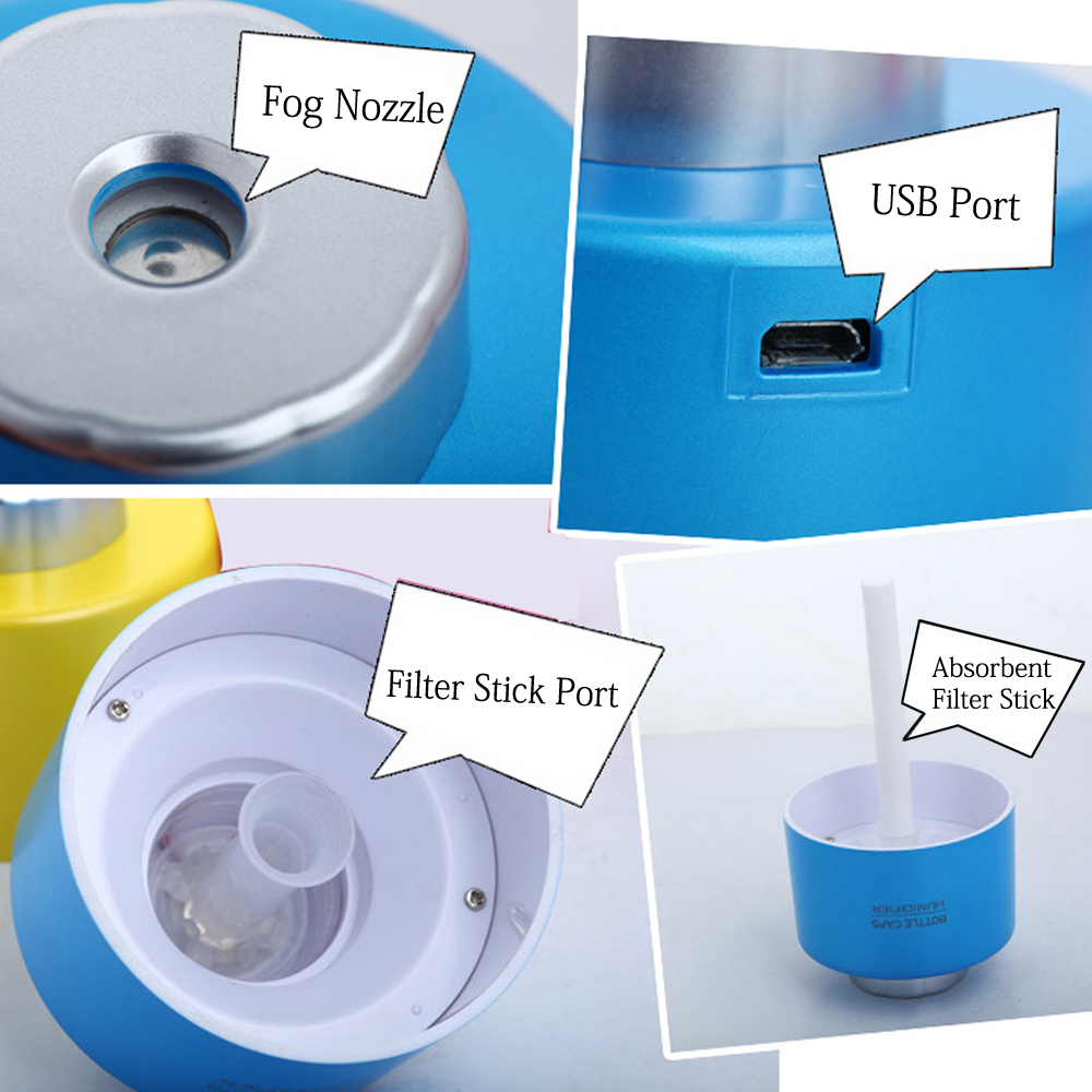 Put the humidifier into every kind of mineral water bottles and charge it.
