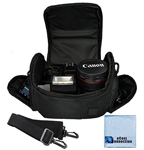 Medium Soft Padded Camera Equipment Bag / Case for Nikon, Canon, Sony, Pentax, Olympus Panasonic, Samsung & Many More + eCostConnection Microfiber Cloth