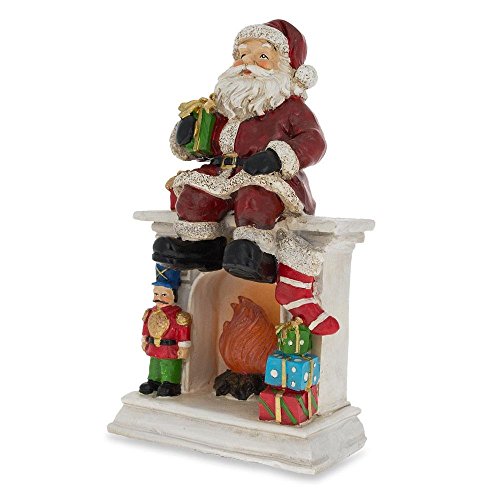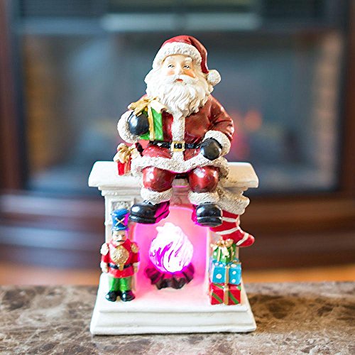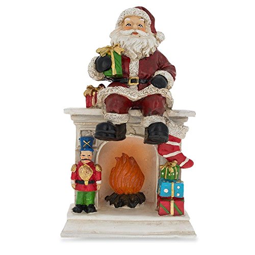 7.75" Santa Sitting on a Fireplace LED Lights Figurine