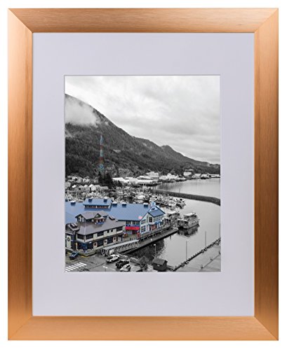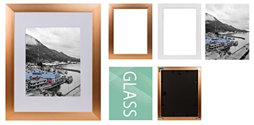 Golden State Art, Rose Gold Color Satin Aluminum Landscape Or Portrait Photo Frame With Ivort Color Mat & Real Glass (11x14)
