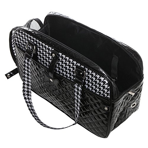 -. Binding : Misc. -. Brand : MyGift -. Color : Black -. EAN : 0887702200682 -. Feature : Keep yourself fashionable and your pets comfortable with this gorgeous quilted pattern soft-sided monochromatic pet tote carrier. / Features accent points such as silver-tone circular buttons throughout, a bone decoration on the front, and a trendy black and white hounds tooth pattern along the top and the handles. / Boasts a mesh top that can be opened by a chain link zipper, a spacious interior, and double handles for easy carrying. / **Official MyGift® product features signature keychain charm** / Approximate Dimensions: 17.7" W x 10.6" H x 7.1" W. -. Label : MyGift -. Manufacturer : MyGift -. MPN : TB-PET0036BLK -. NumberOfItems : 1 -. PackageQuantity : 1 -. PartNumber : TB-PET0036BLK -. ProductGroup : Pet Products -. ProductTypeName : PET_SUPPLIES -. Publisher : MyGift -. Size : Medium -. Studio : MyGift -. Title : MG Collection Quilted Designer Black & White Hounds Tooth Pet Travel Tote / Soft Sided Dog & Cat Carrier -. UPC : 887702200682