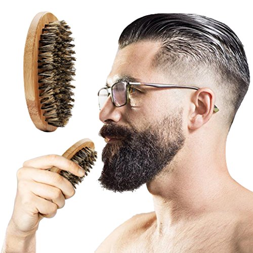 - 【WOOD PALM BEARDED BRUSH】: You may not be able to tame the man, but you can tame the beard with the help of this bearded brush. Made with 100% boar bristles, this soft yet firm brush exfoliates skin and distributes natural oils throughout your beard for more volume and shine.
