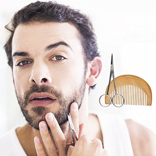 - 【BEARD COMB & SCISSOR】: The natural wood beard comb and the extra sharp stainless steel barber scissors help style,groom,trim and shape beard & mustache much easier.