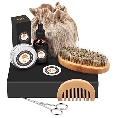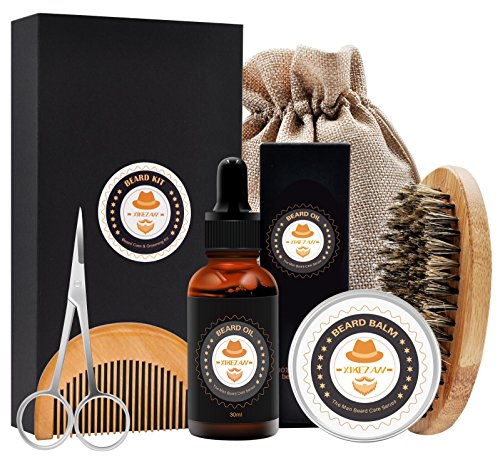XIKEZAN Mens gifts for Men Beard Care Grooming & Trimming Kit Unscented Beard Conditioner Oil + Mustache & Beard Comb+Balm Wax+Brush+Mustache Scissors for Styling Shaping & Growth
