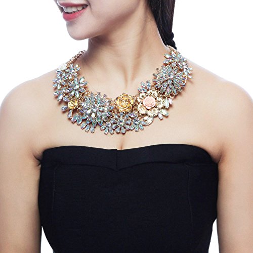 2. MATERIAL & CRAFTSMANSHIP: Charming crystal glass beads & rhinestones & ribbon tie, materials are green- lead free, nickel free & no cadmium; Each skilled worker only make 1 novelty necklace in 2 hour.