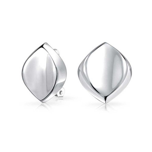 Complete your look with these refined and elegant, sterling silver, modern oval clip on earrings for non - pierced ears. Accented by a three dimenionsal design with a high shine finish.