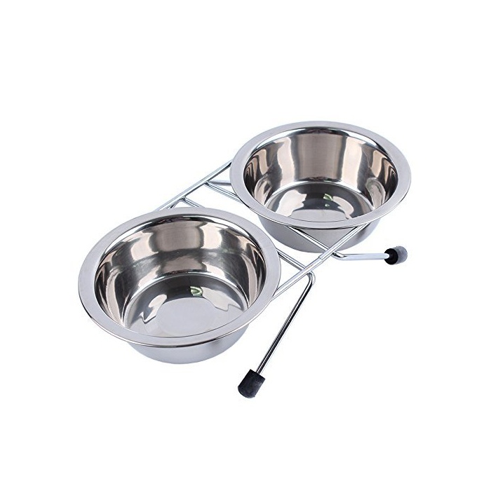 Yosoo 애완동물 식기 식사대 밥 만들어 넣음(담는 그릇·상자 등) 후드 묘개 feeder 볼 세트 스테인레스 스탠드 부착 소형견 중형견 소동물
