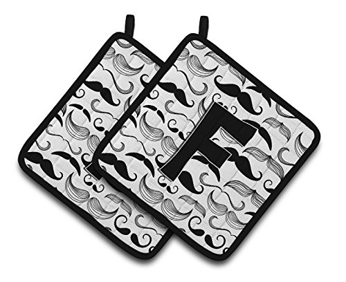 Caroline's Treasures Letter F Moustache Initial Pair of Pot Holders CJ2009-FPTHD, 7.5HX7.5W, Multicolor