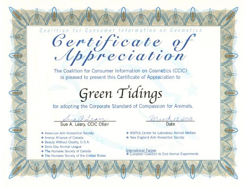 Green Tidings All Natural Deodorant is: Non-toxic, Vegan, Gluten-free, Corn-free, Soy-free, Paraben-free, SLS-free, Aluminum-free, Propylene-glycol free, Fragrance-Free, Petroleum and Petrolatum-free, Pthalate-free, Paraffin-free, Mineral Oil-free, no artificial colors, No Silicone Oil, No Menthol, Phenol, or Salicylic Acid, Certified Cruelty-free by Leaping Bunny, & made in a solar powered facility.