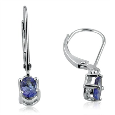 3/4ct total weight genuine tanzanite earrings set in sterling silver. These lovely earrings measure just over 3/4 inches long and feature tanzanite stones that measure 6mm long and 4mm wide.