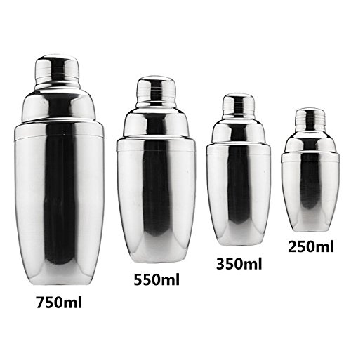 -. Feature : Features: the shaker includes shaking bottle, strainer and cover / High Quality Shaker: made out of 410 stainless steel, solid, high quality, polished as mirror, this cocktail shaker looks elegant, it is built to last long / Easy to Use Shaker: can be used by beginners and experienced bartender. / Essential Barware: perfect for bar, restaurant, club, home and more / Size: 250ml; 350ml; 550ml; 750ml