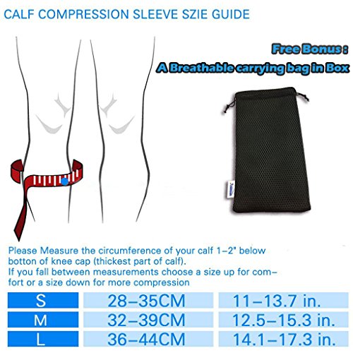 -. Feature : How to help shin splints - ASOONYUM Calf sleeve graduated compression 20-30mmHg. good for Blood Circulation, Reduce runners are prone to lots of common inflammation injuries and lactic acid build up. / Anti-bacteria Breathable Material - keeping you warm when cold, made of Mix Nylon 85%, Spandex 15%, It's very Soft and Keeps you dry and comfortable, worn all day throughout the night. / How to prevent roll down the calves - Silicone anti-slip wave on Amazon. ensuring your sleeve stays always put. / What does a calf sleeve do - while you travel, workout, or play basketball football cycling ! No matter if you're a runner, nurse, are pregnant, athlete or just experience occasional leg pain. In order to avoid that unwanted pain as well as muscle cramps. calf compression sleeve is your need. / What's in Box: 2 x Calf Compression Sleeve and Breathable carrying bag in The Box. Comfortable Sizing These footless compression Socks are perfectly sized for men and women (please view chart on the right).
