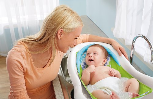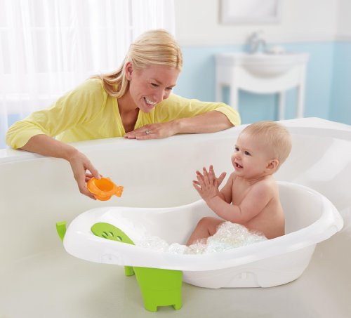 - Feature : Four stage convertible bath center with squeeze bottle and whale scoop for gentle rinsing or play / Plug for easy drain and clean / Hook for easy drying and space-saving storage / Features "Sit-Me-Up Support" to aid unsteady sitters in the tub / Tub puts infants at a gentle recline on a soft-foam surface, preventing slipping and sliding, and making bath time less stressful / Hook for easy drying and space saving storage / Features Sit-Me-Up Support to aid unsteady sitters in the tub / Tub puts infants at a gentle recline on a soft-foam surface, preventing slipping and sliding
