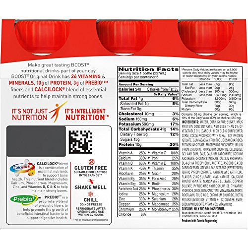 (Boost)/Sports Nutrition/Protein/DIRECT FROM USA/Boost Original Rich Chocolate Complete Nutritional Drinks, 8 fl oz, 6 count